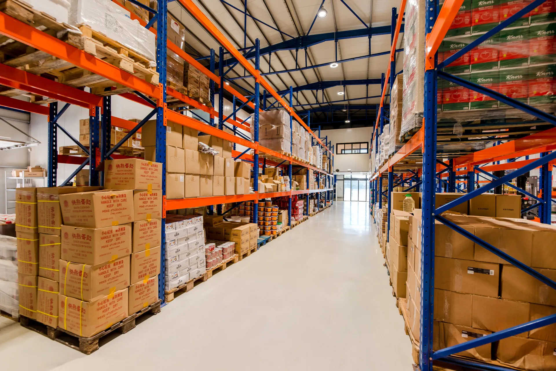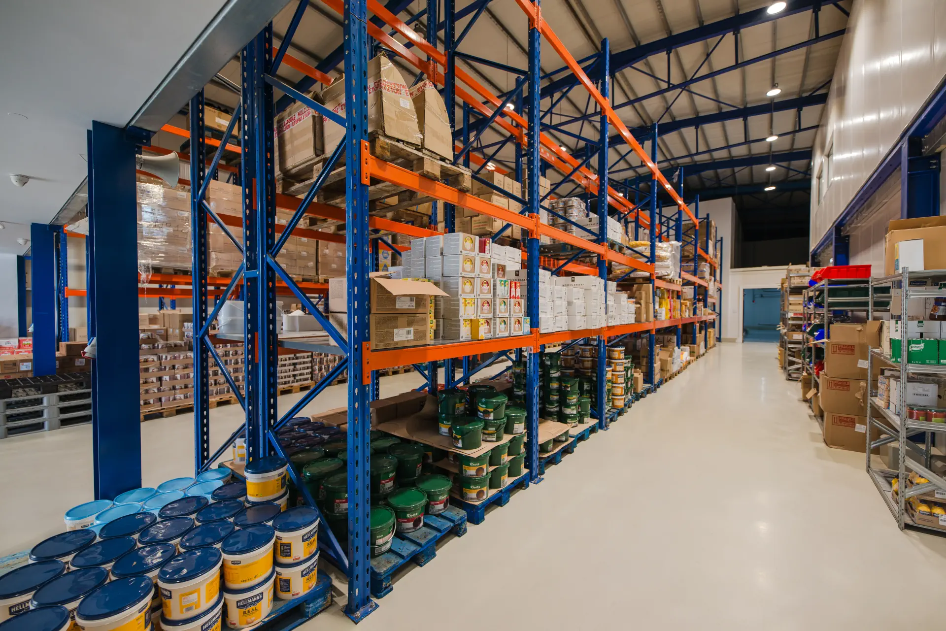 Οι ιδιόκτητες εγκαταστάσεις υψηλών προδιαγραφών περιλαμβάνουν αποθήκες ξηρού φορτίου, υπερσύγχρονους ψυκτικούς θαλάμους (συντήρησης και κατάψυξης), χώρους γραφείων και Kitchen Lab, συνθέτοντας ένα ολοκληρωμένο hub τροφοδοσίας.